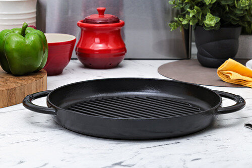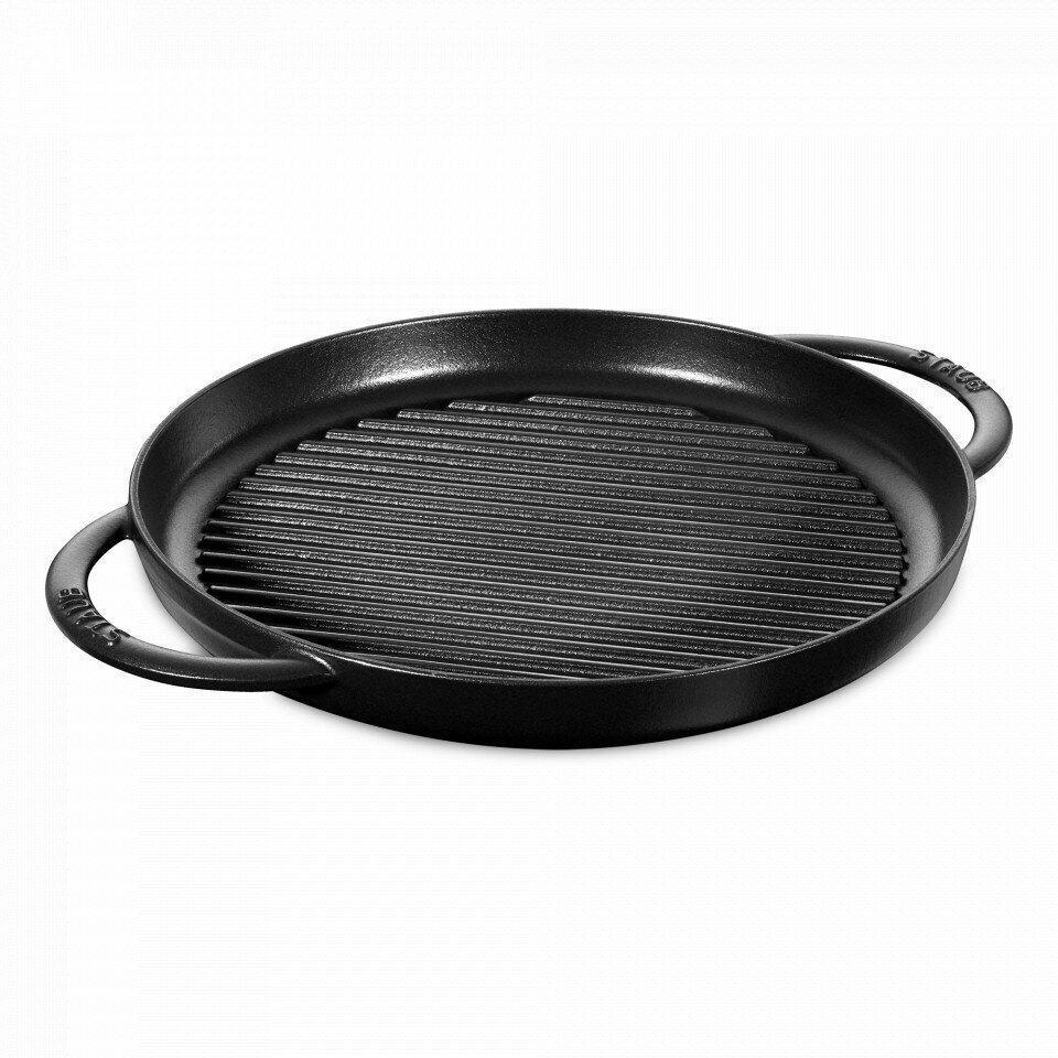 Сковорода-гриль Staub круглая, 26 см, с двумя ручками, черная