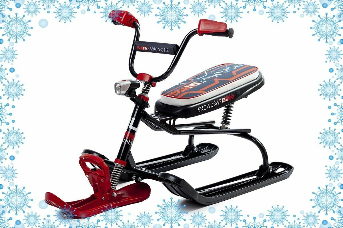 Снегокат СНД3 для детей и взрослых Nika nika kids snowdrive5. Грузоподъемность до 100кг. Велоруль, фонарь, тормоз, трос с авто намоткой черный каркас