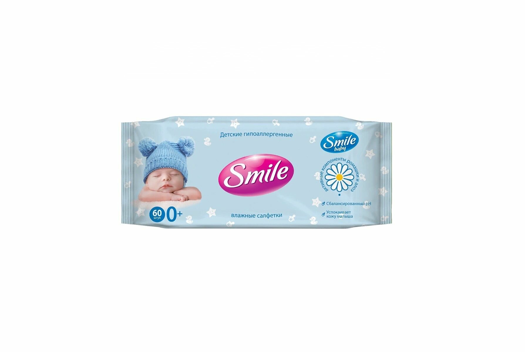 Влажные салфетки Smile Для новорожденных, пластиковая крышка, 60 шт.