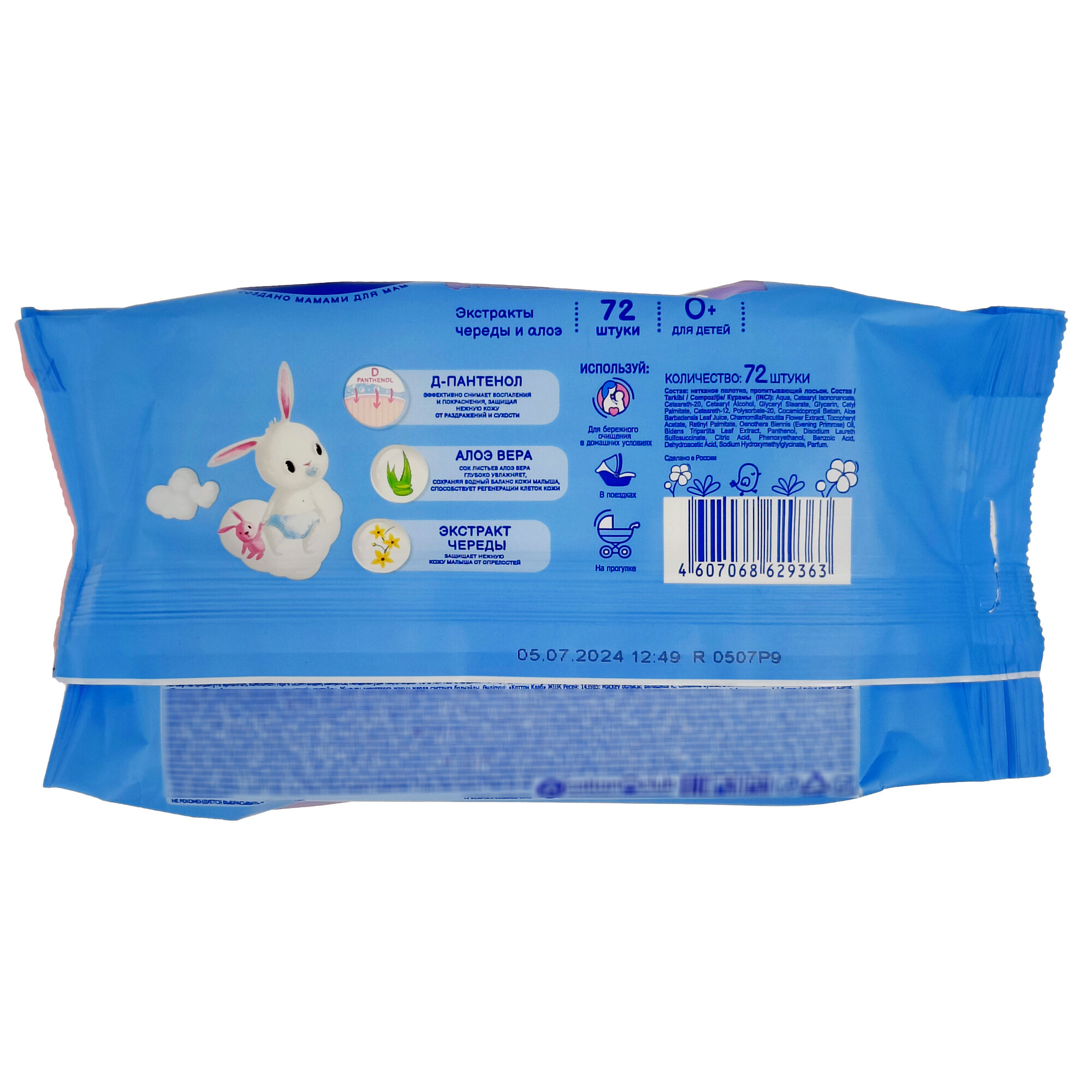 Влажная туалетная бумага для детей с экстрактом череды, алоэ и Д-пантенолом 72шт