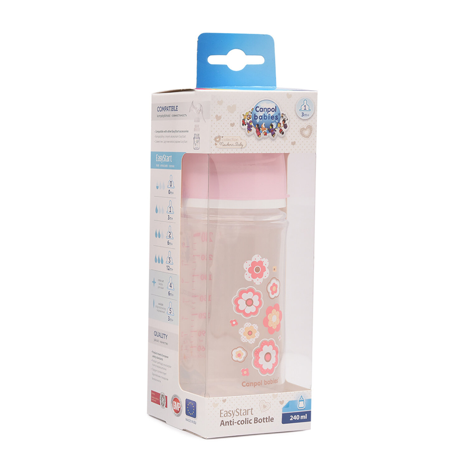 Canpol Babies Бутылочка антиколиковая с широким горлом EasyStart Newborn Baby 240 мл, с 3 месяцев, розовый