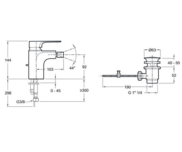 Смеситель Jacob Delafon Aleo+ E72316-CP для биде с донным клапаном
