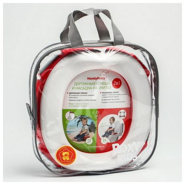 | Отзыв: | Дорожный горшок HandyPotty от Roxy kids нас очень выручил. Однажды мой ребенок переболел ротовирусом (никто не застрахован). После выздоровления нам нужно было поехать в деревню к бабушке с дедушкой. Врачи сказали,что ребенок уже не заразен, но я еще побаивалась, так как в деревню приезжают другие внуки , и горшок, который у нас там есть я использовать не стала, чтобы, не дай Бог, не оставить вирус. И мы взяли с собой HandyPotty (наш любимый, который не раз нас выручал во многих поездках). Пользовались также одноразовыми пакетами (ОООчень удобно!). На горшок есть силиконовая накладка, чтобы ребенку не было холодно и жестко. Легко раскладывается и собирается. Очень компактный, все вмещается в маленькую сумочку.