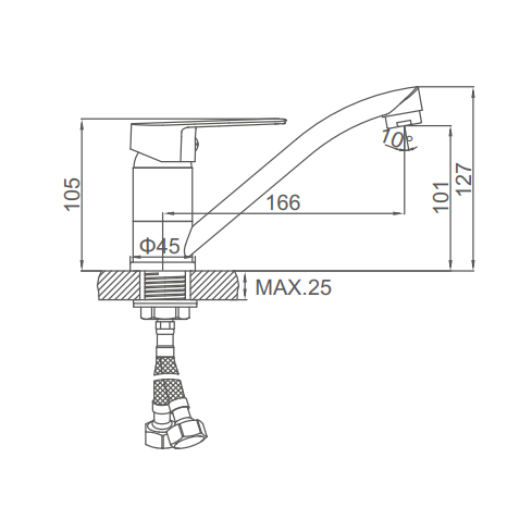Смеситель для кухни A4265, однорычажный, с гайкой, хром