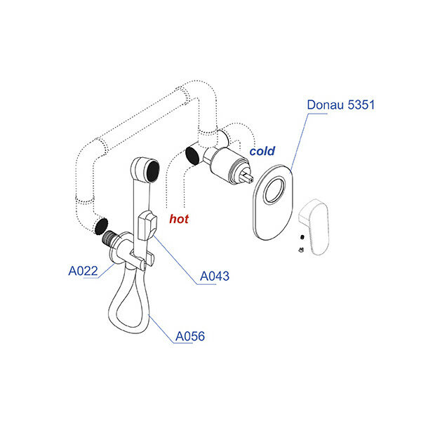 A11056 Встраиваемый комплект для биде со шлангом 100 см