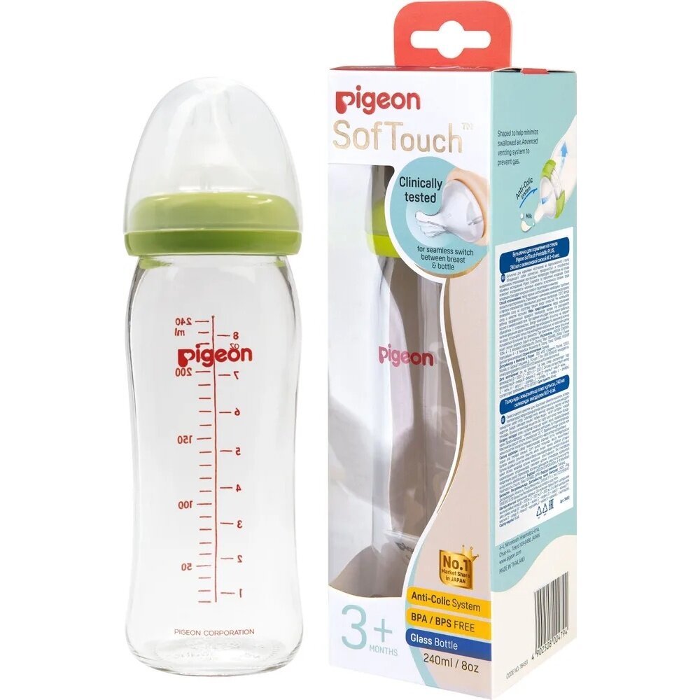 Бутылочка для кормления PIGEON SofTouch Peristaltic PLUS, 240 мл, премиальное стекло