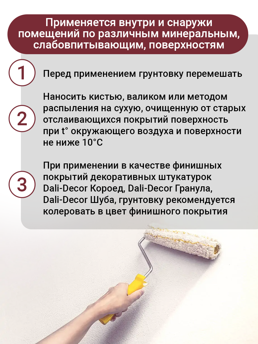 СохранитьDALI-DECOR QUARTZ PRIMER / дали декор кварц праймер грунтовка адгезионная акриловая белый 3,5 кг интересное: