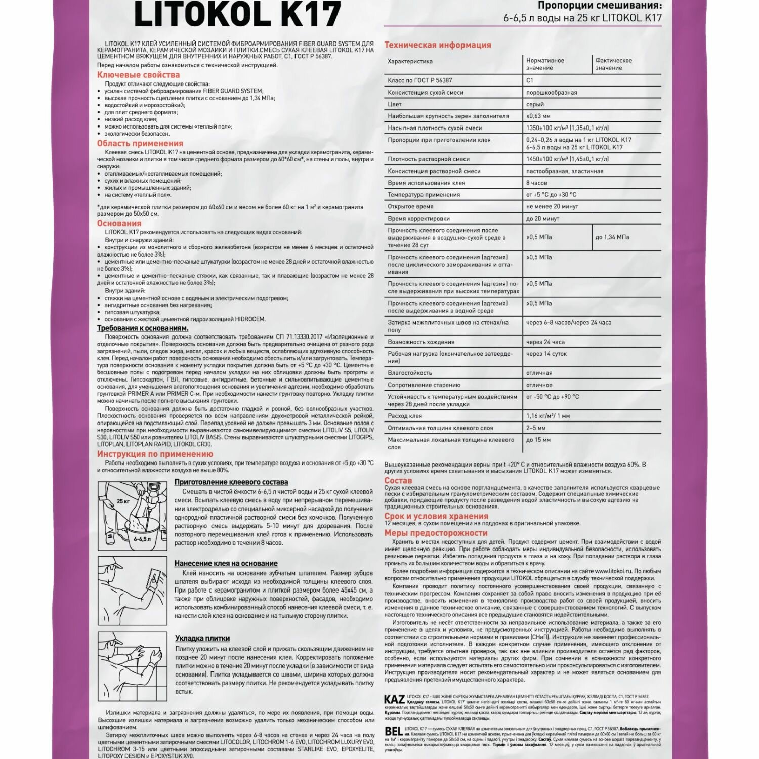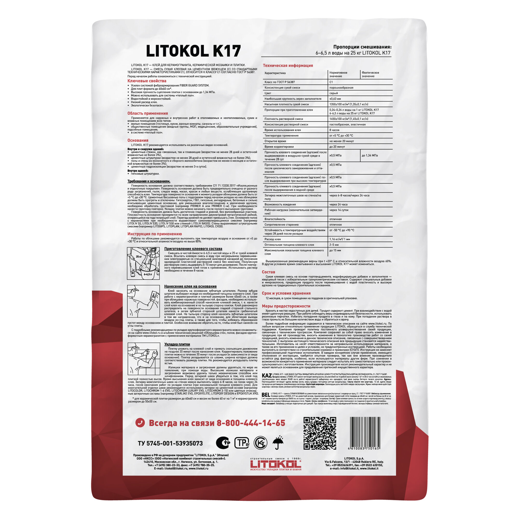 Ниже Вы можете прочитать отзывы на Клей Litokol К 17 (класс С1) 25 кг., ознакомится с подробными характеристиками, посмотреть интересные обзоры и фотографии на Клей Litokol К 17 (класс С1) 25 кг..
