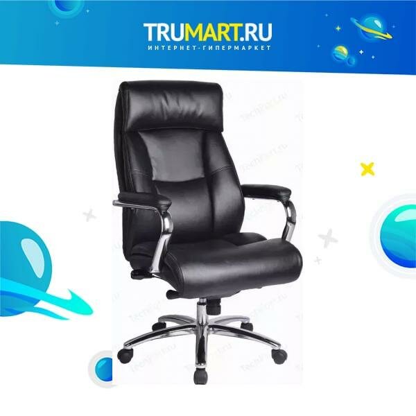 Кресло руководителя Brabix "Phaeton EX-502", натуральная кожа, хром, черное