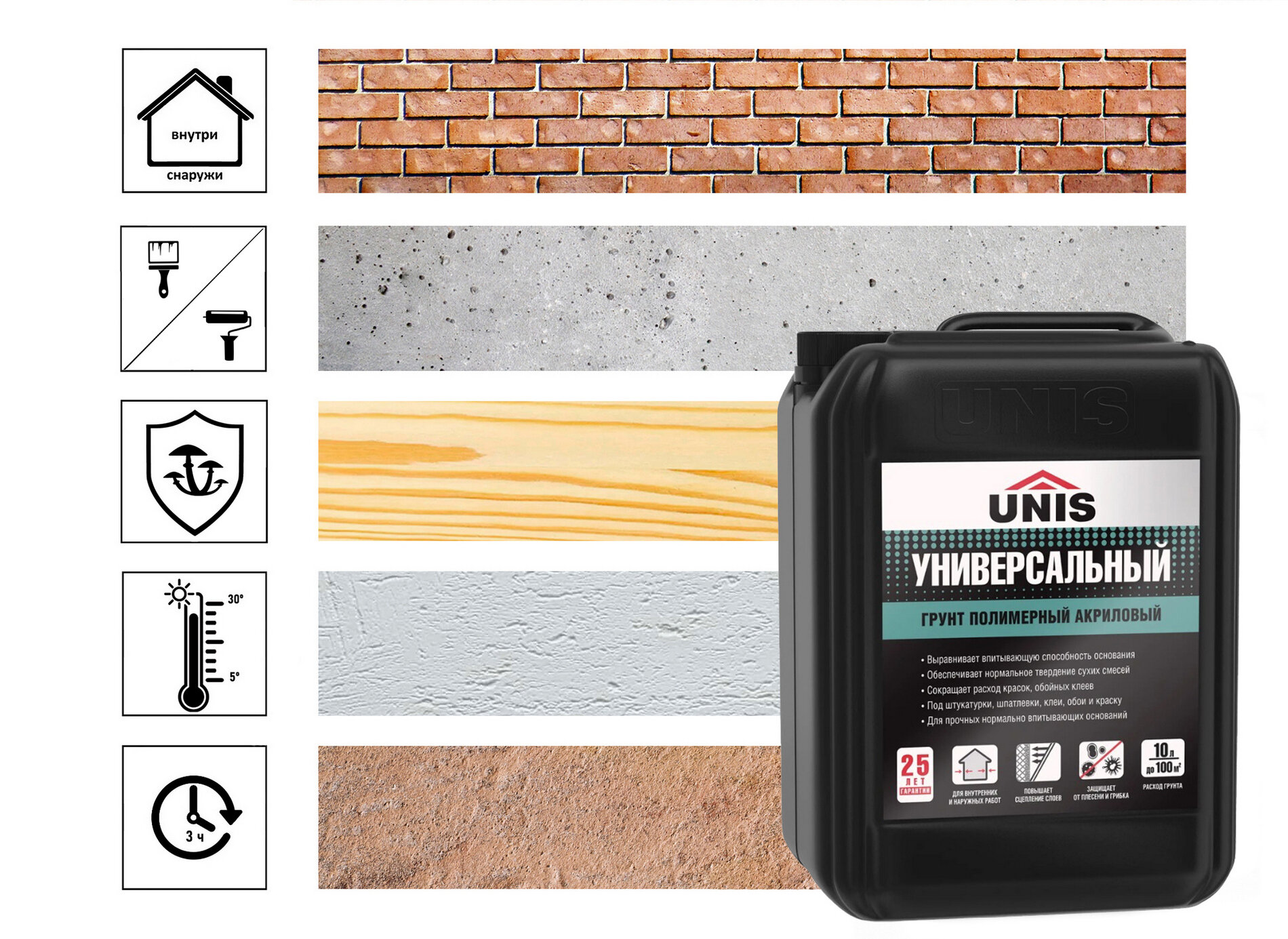 Юнис грунтовка универсальная (10л) / UNIS грунт универсальный акриловый (10л)