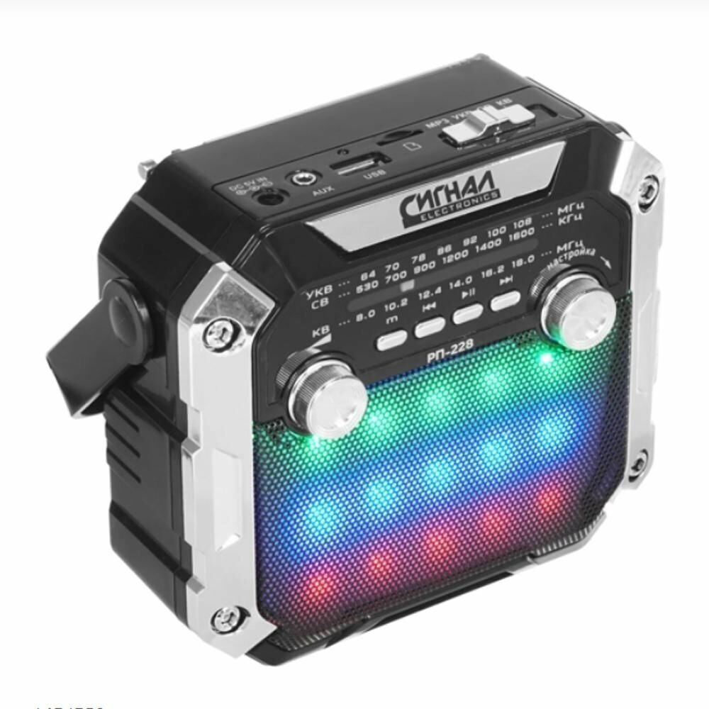 Радиоприемник Сигнал РП-228 УКВ 64-108МГц,СВ,220V,акб 1200mAч,USB/microSD/AUX,свет.фон.,дискосв