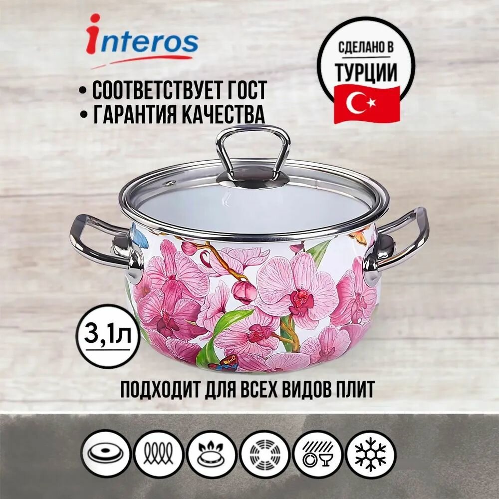 СохранитьКастрюля Орхидея эмал. 3,1л Interos интересное: