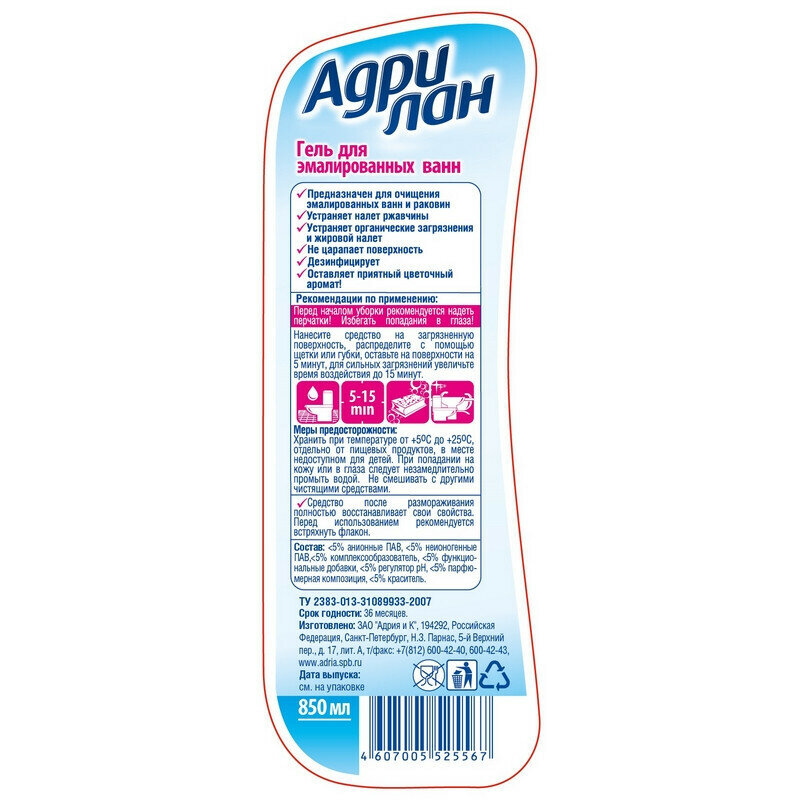 Гель для сантехники с цветочным ароматом Адрилан, 500 мл, 600 г