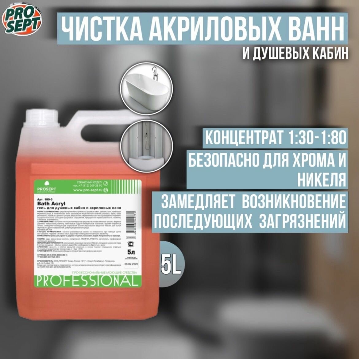 Средство для чистки акриловых поверхностей и душевых кабин Bath Acryl . Концентрат, 5л, "PROSEPT"
