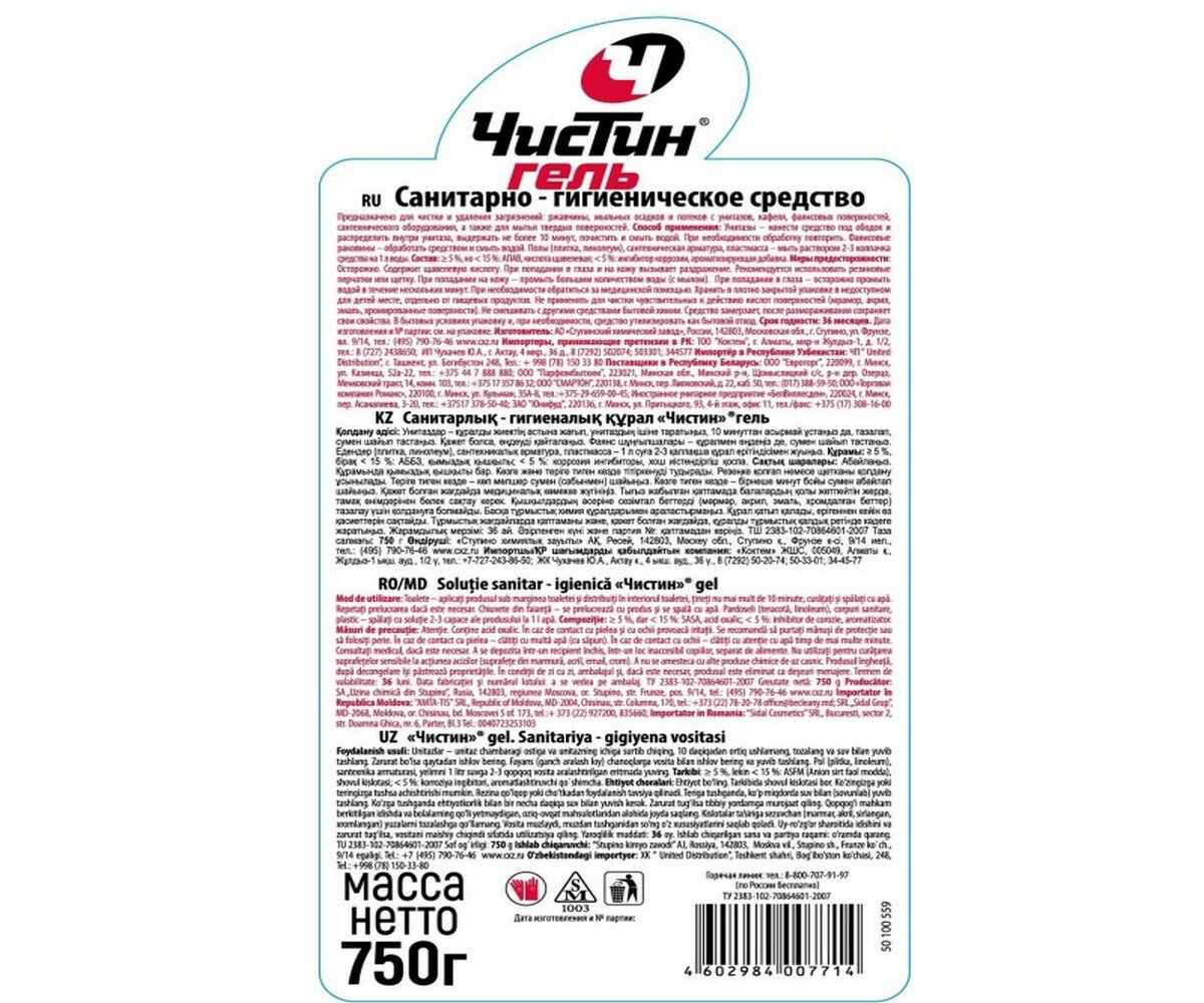 Чистин Санитарно-гигиеническое средство "Чистин" Гель, 750 гр