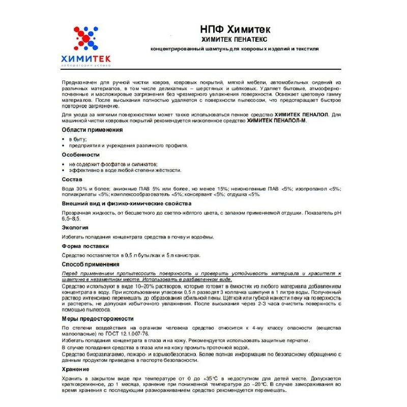 Средство для чистки ковров и обивки химитек пенатекс 0,5л интересное: