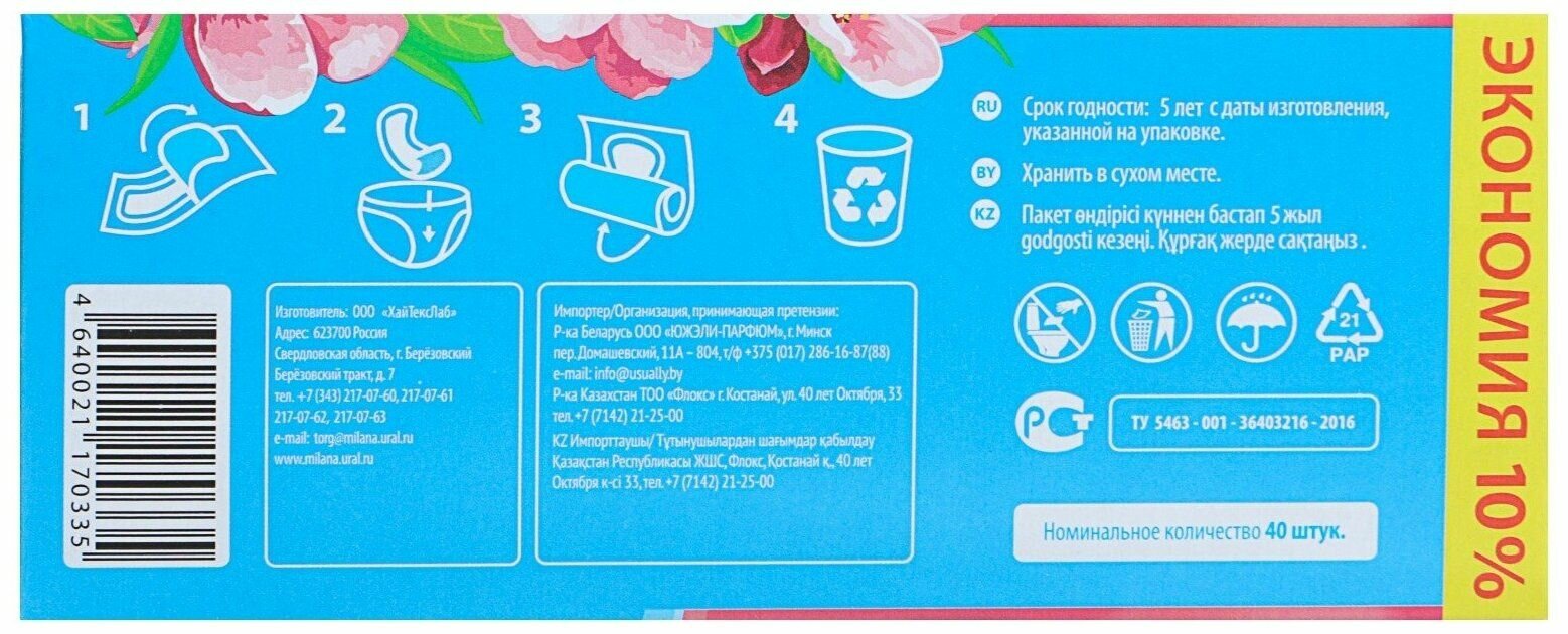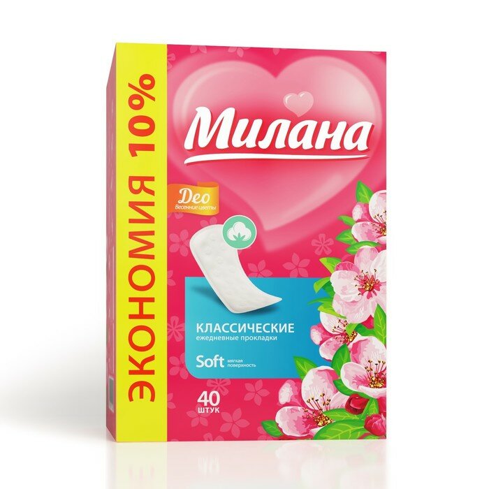 Купить Прокладки ежедневные «Милана» Classic Deo Soft Цветы, 40 шт. (комплект из 10 шт)