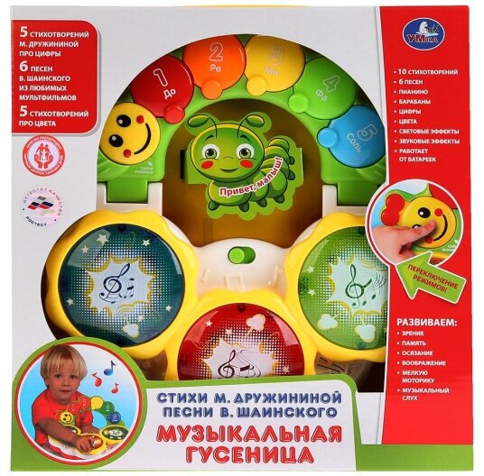 Музыкальная игрушка Умка Гусеница, свет, звук (10 стихов, 6 песен) (B1295011-R) интересное: