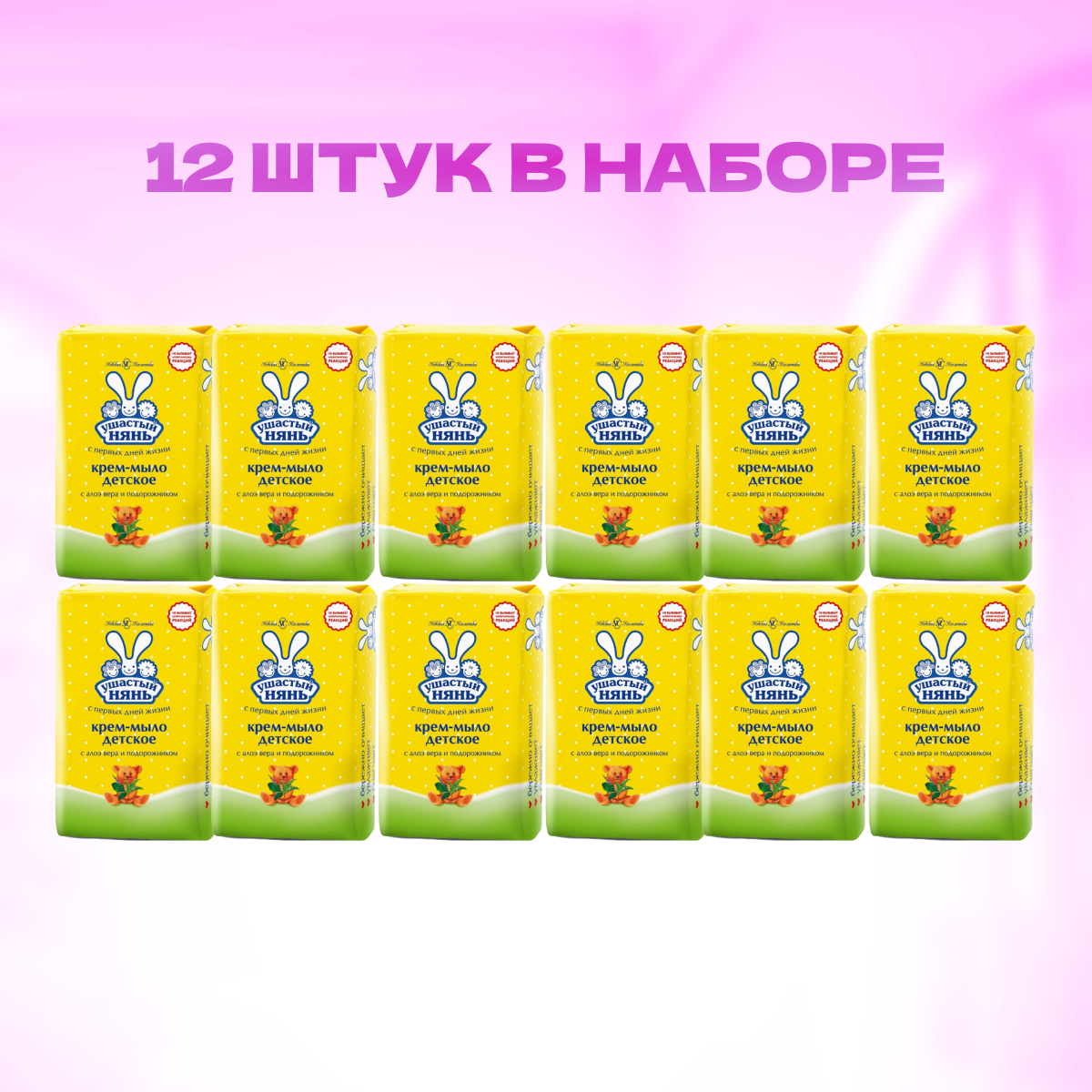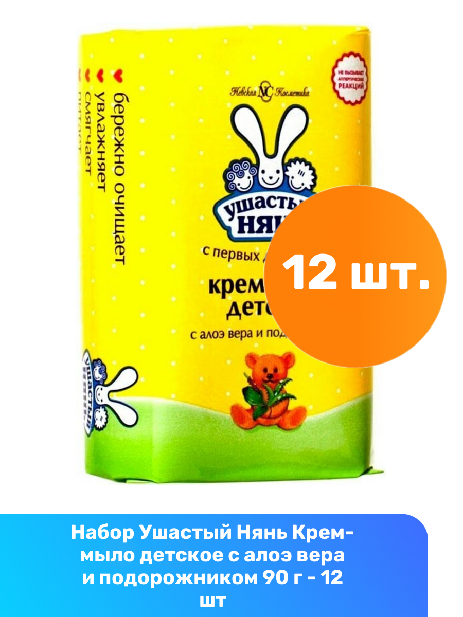 Купить Детское крем-мыло Ушастый нянь с алоэ вера и подорожником 90 г х 12 шт