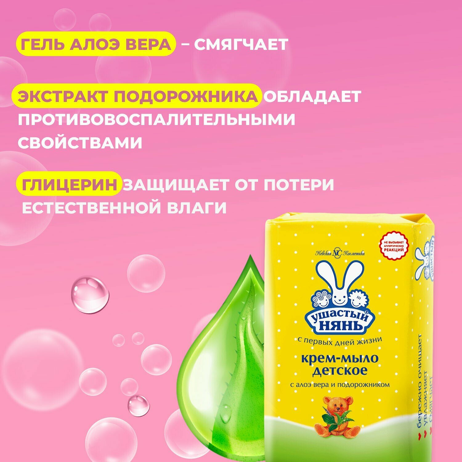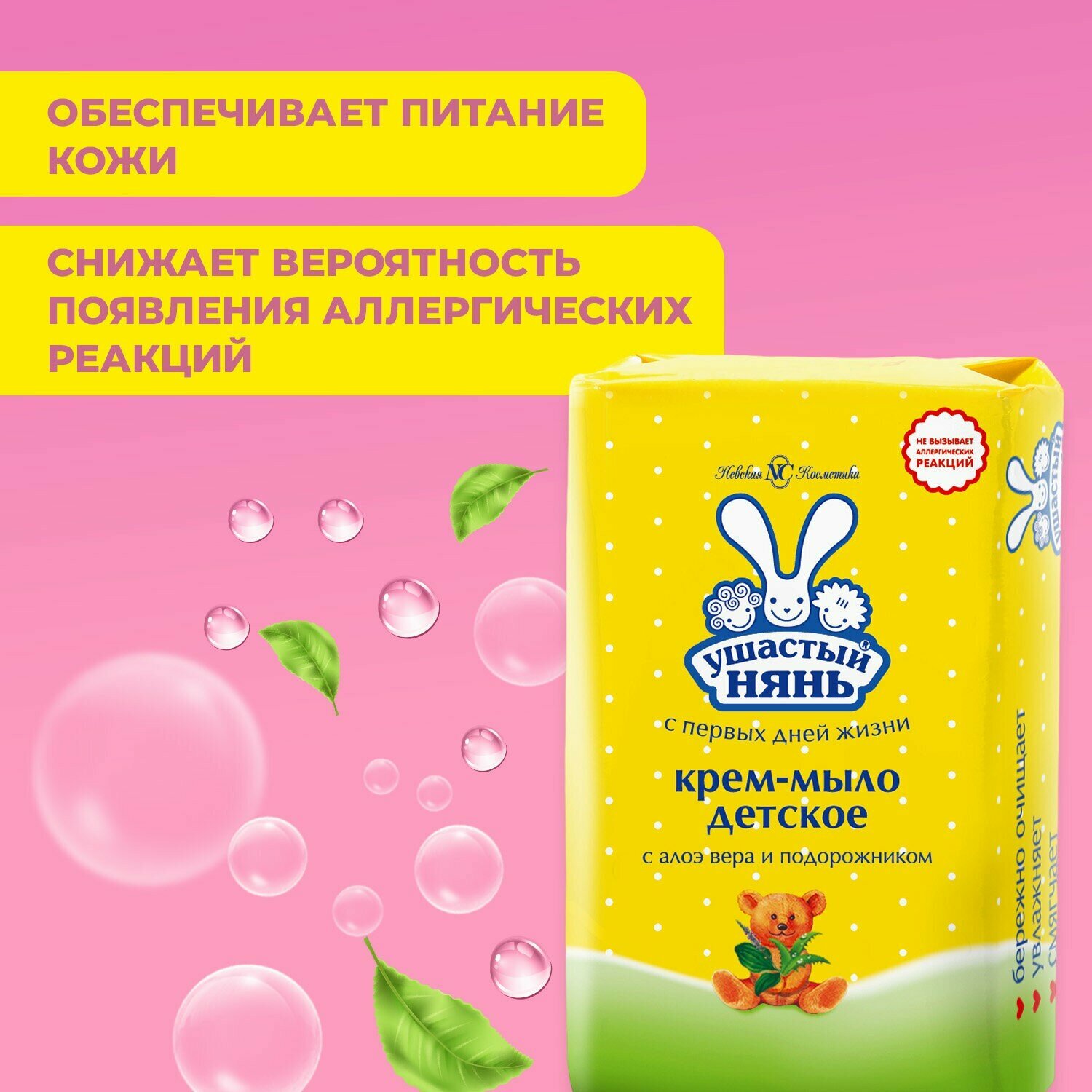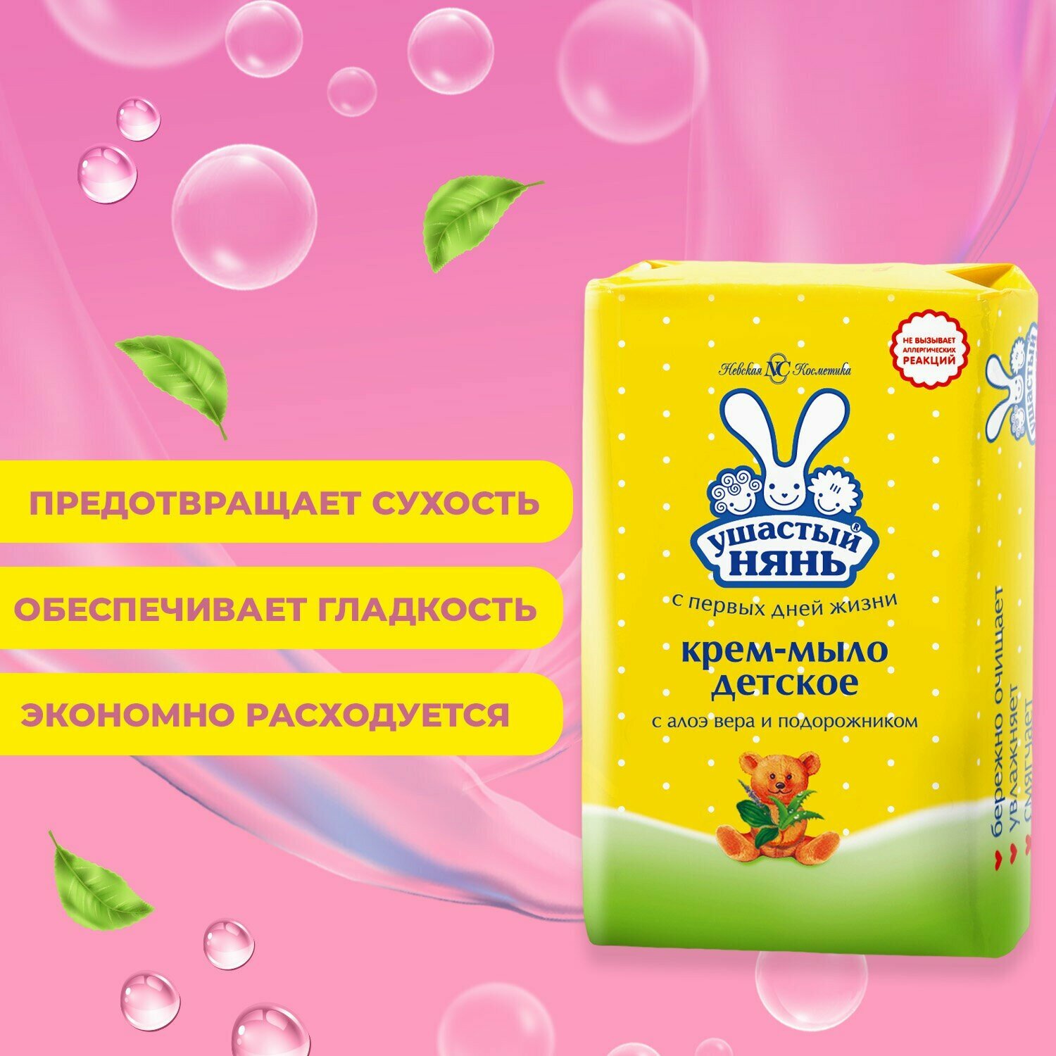 Невская косметика Крем-мыло Ушастый нянь с алоэ вера и подорожником 90 гр
