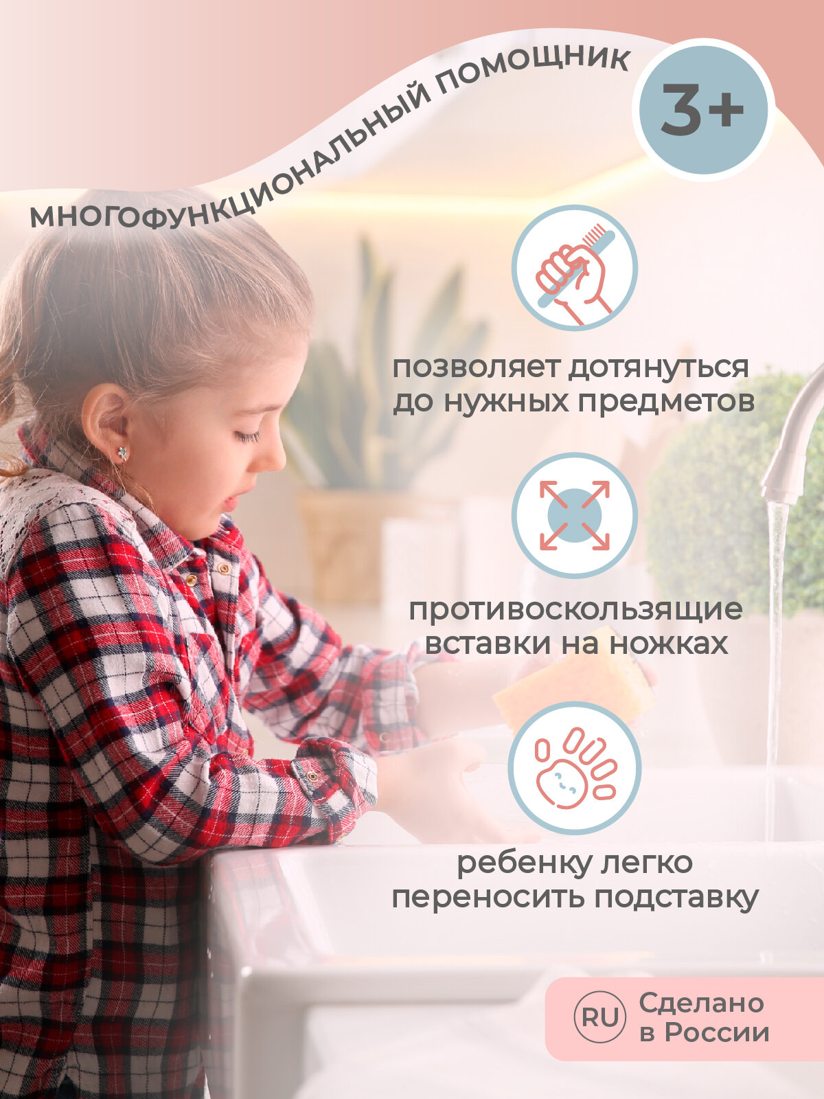 | Плюсы: | Ребенку удобнее с такой подставкой чем с табуреткой. |