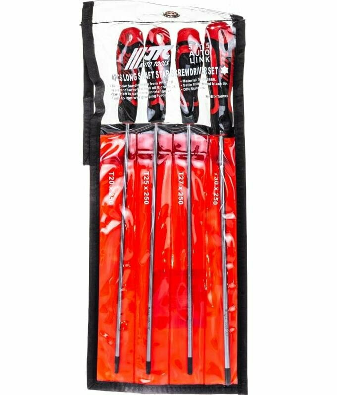 Набор отверток TORX T20х250мм-Т30х250мм удлиненных 4 предмета JTC-5115