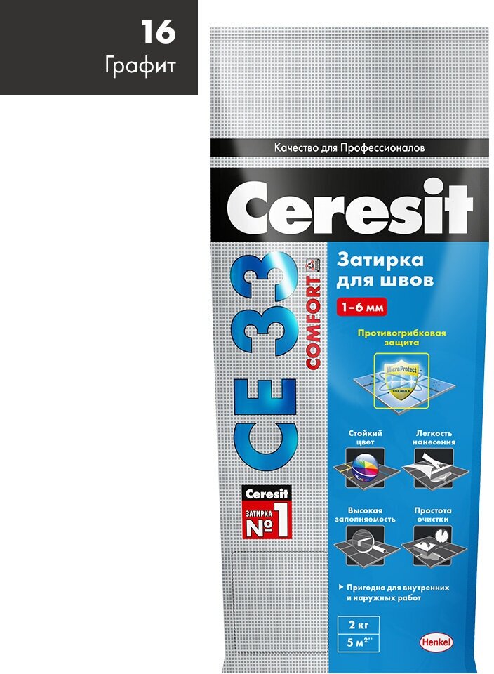 Сохранитьзатирка для швов CERESIT СЕ 33 Super 1-6мм 2кг графитовая, арт.2092751 интересное: