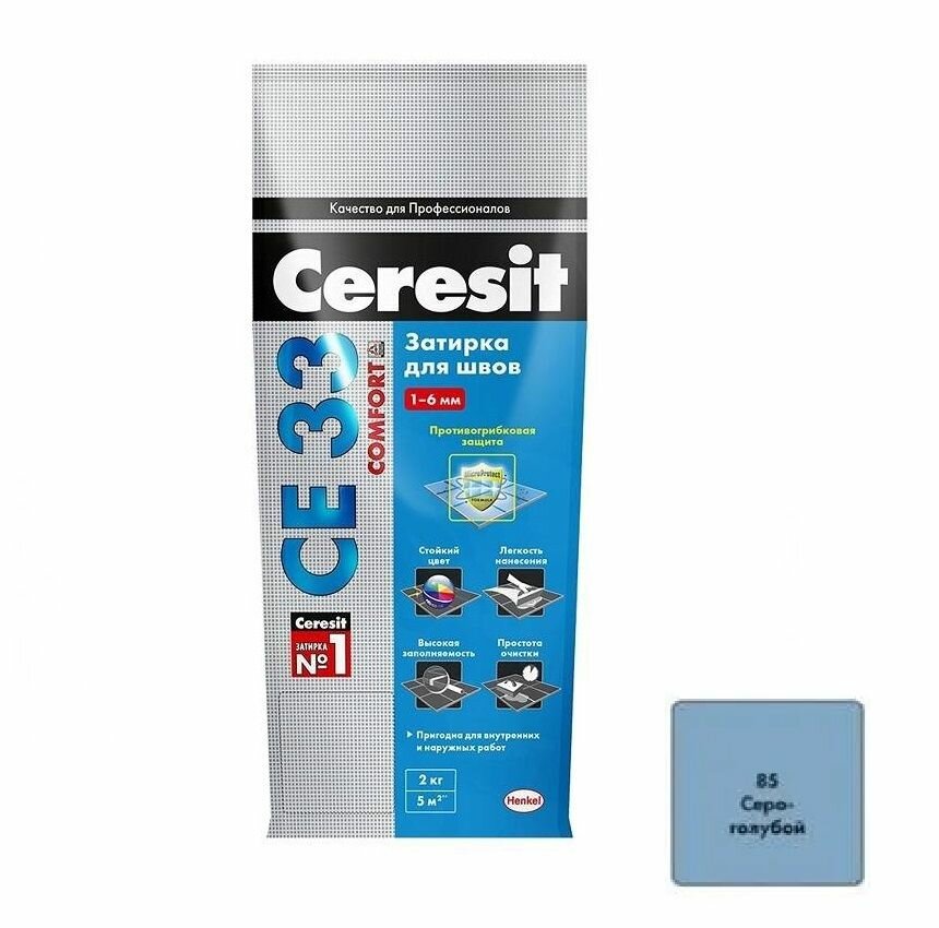 СохранитьЗатирка Ceresit "Super СE 33", цвет: серо-голубой (85), 2 кг интересное: