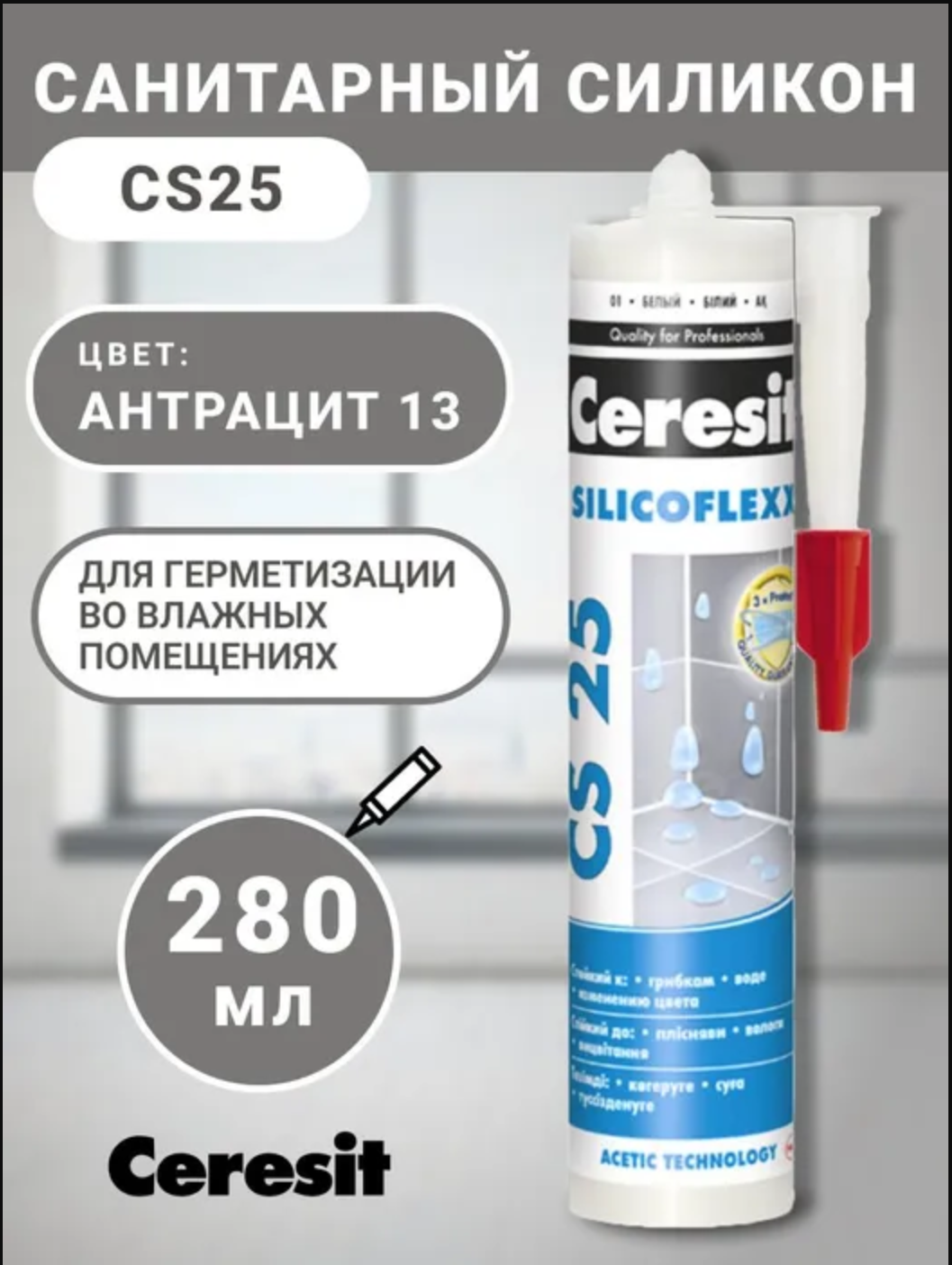 Ниже Вы можете прочитать отзывы на Ceresit CS 25 Silicoflexx герметик нейтральный силиконовый, 280 мл (№13 антрацит), ознакомится с подробными характеристиками, посмотреть интересные обзоры и фотографии на Ceresit CS 25 Silicoflexx герметик нейтральный силиконовый, 280 мл (№13 антрацит).
