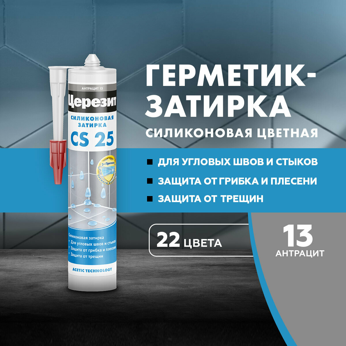 Затирка герметик силиконовая Церезит CS 25, №13 антрацит, 280 мл