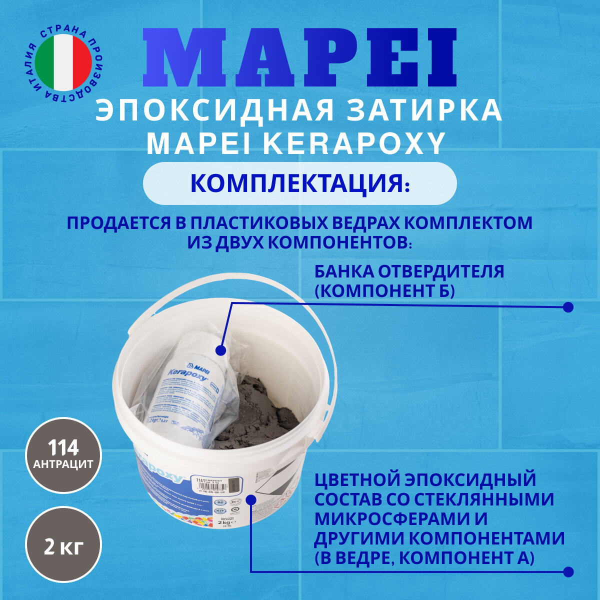 Купить Затирка эпоксидная Mapei Kerapoxy №114 антрацит 2 кг
