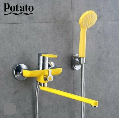 СохранитьСмеситель Potato Р22223-10 для ванны / душа / раковины с длинным (40 см) поворотным изливом, хромированный, Желтый интересное: