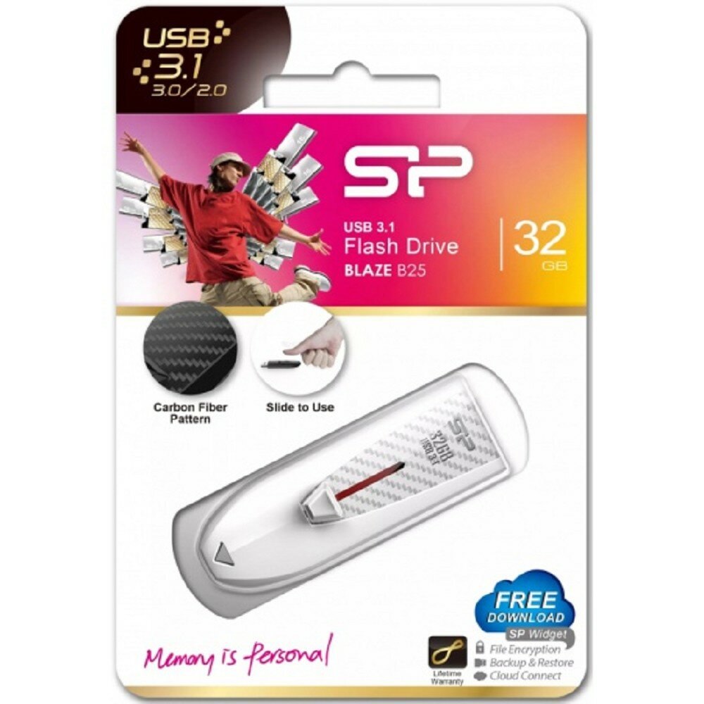 Флешка USB Silicon Power Blaze B25 32ГБ, USB3.1, белый [sp032gbuf3b25v1w]