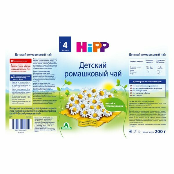 Чай HiPP Ромашковый, гранулированный, c 4 месяцев, 0.2 кг