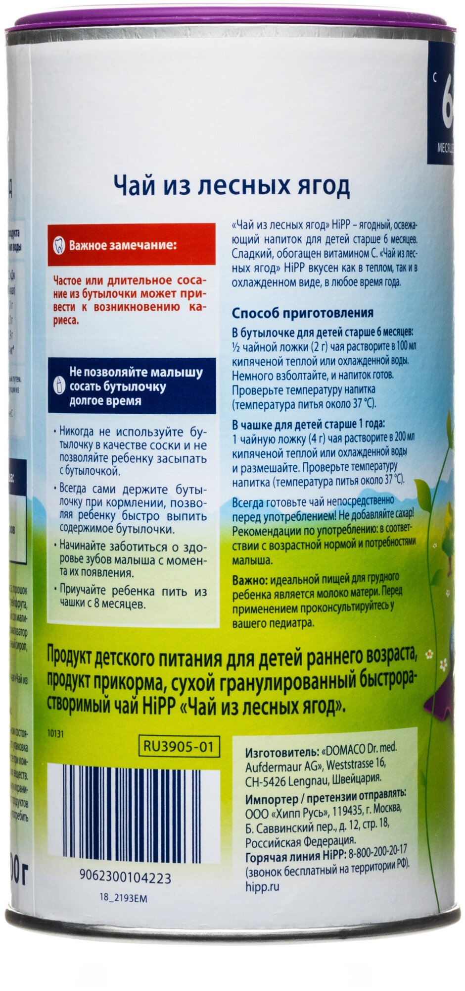 HIPP Чай Лесные Ягоды с 6 мес 200г интересное: