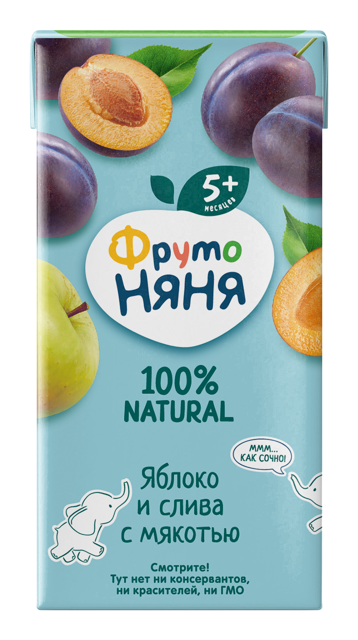 Нектар ФрутоНяня из яблок и слив с мякотью, с 5 месяцев, 0.2 л