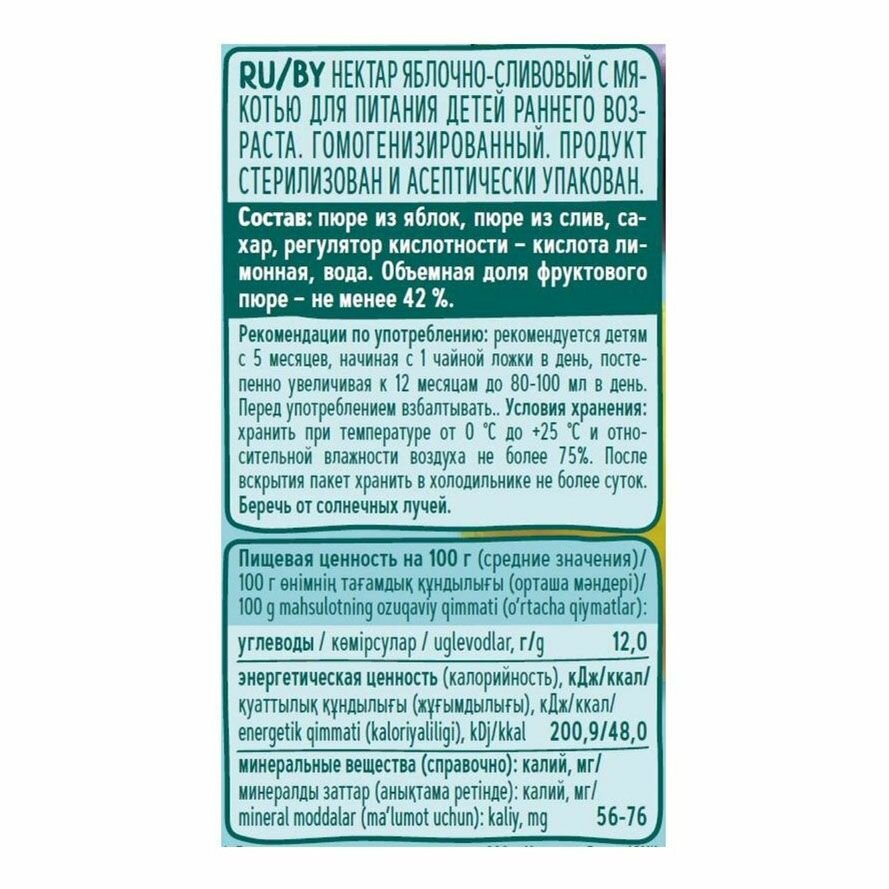 Фруктовый детский сок яблоко-слива с мякотью 5 мсе 18х200 мл интересное:
