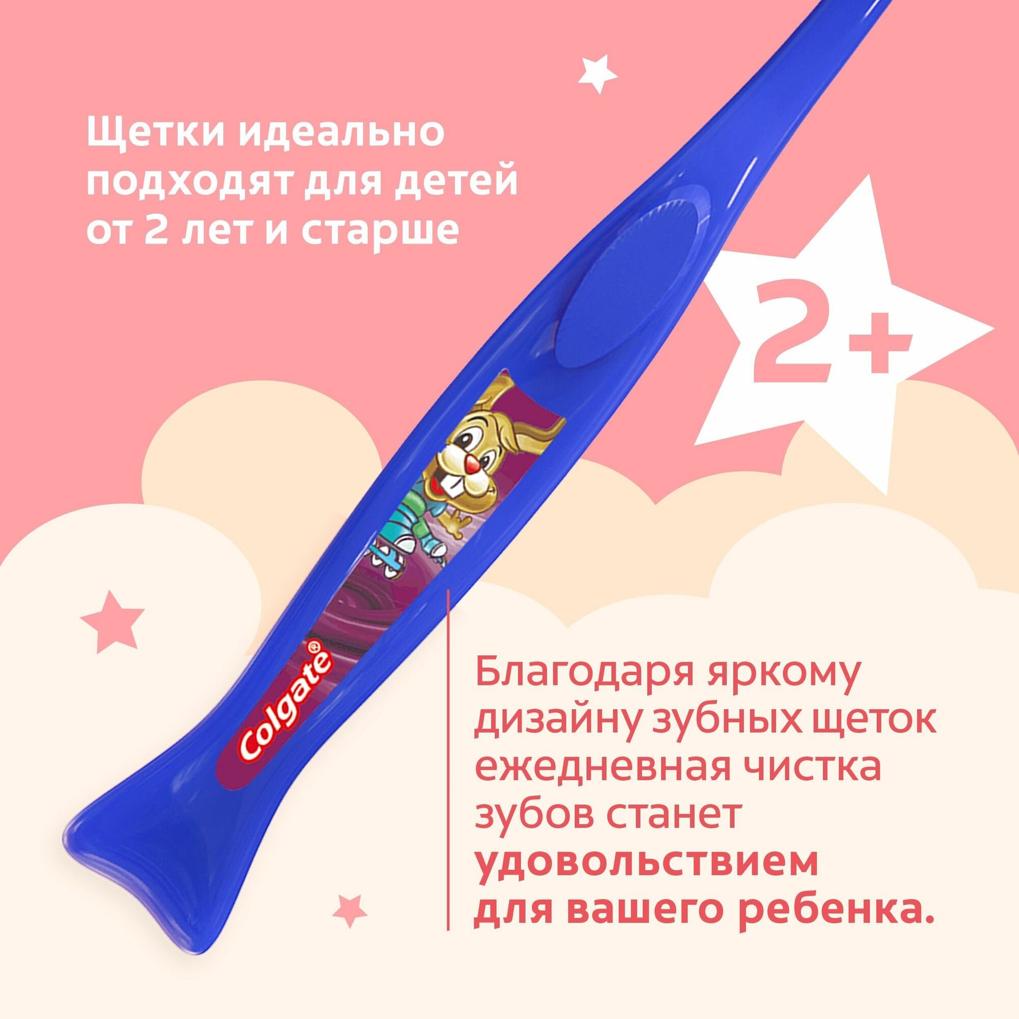 Зубная щетка детская Colgate Заяц 2+ Супермягкие Щетинки 2+1 шт