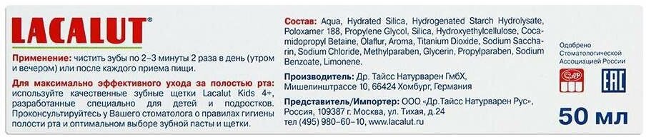 Зубная паста Lacalut детская от 4-8лет - Dr.Theiss Naturwaren Rus