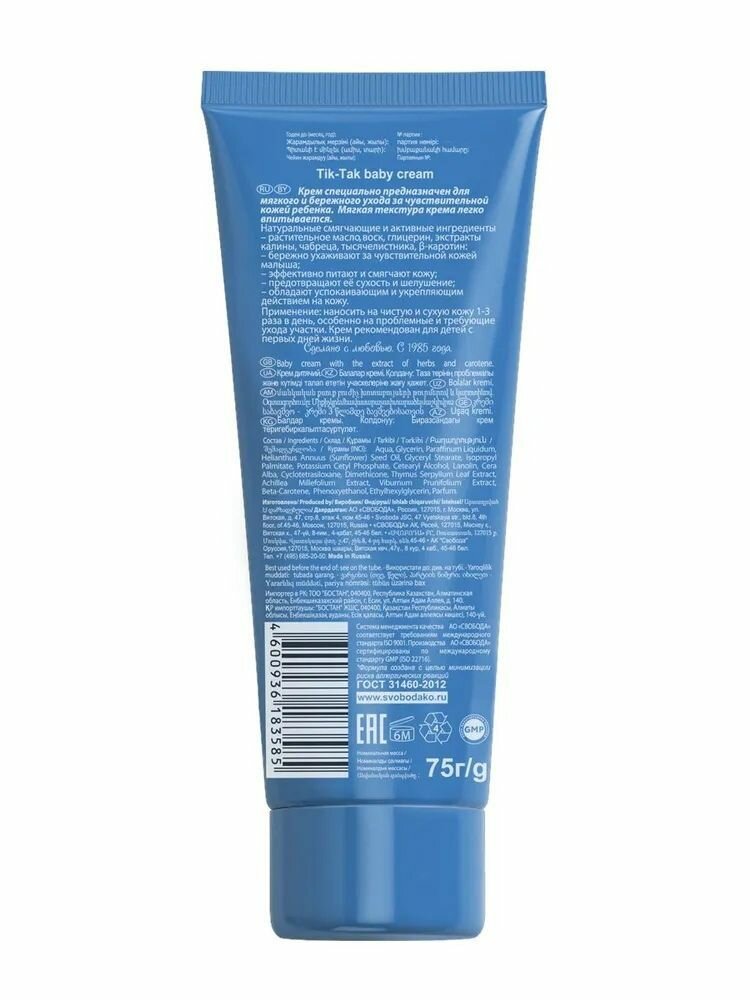 Крем детский Свобода, Тик-Так, для тела, в тубе