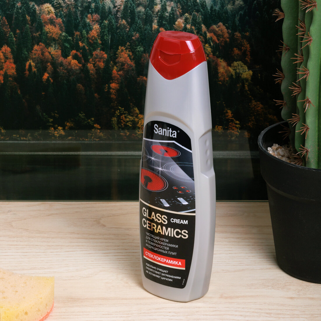 Крем чистящий "SANITA" д/стеклокерамич/индукционных плит, 600 гр