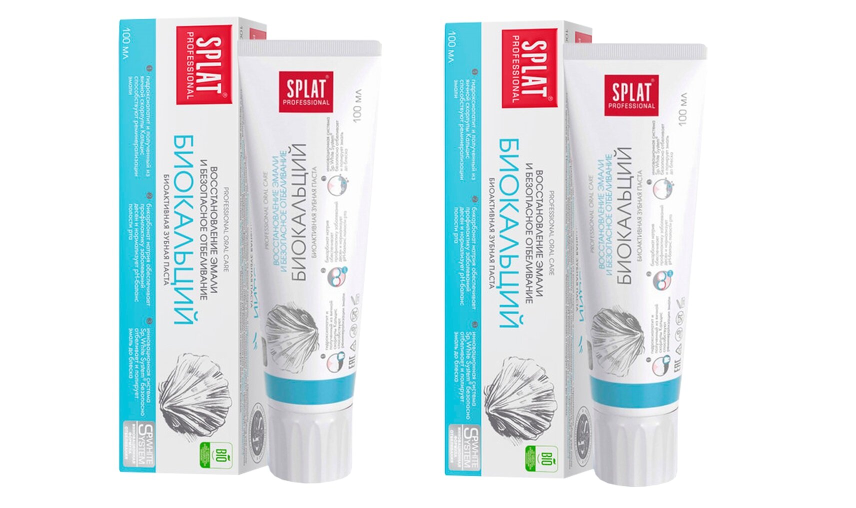 Зубная паста Splat Professional Биокальций с гидроксиапатитом, для укрепления и безопасного отбеливания эмали, набор 1+1, 100 мл х 2 шт