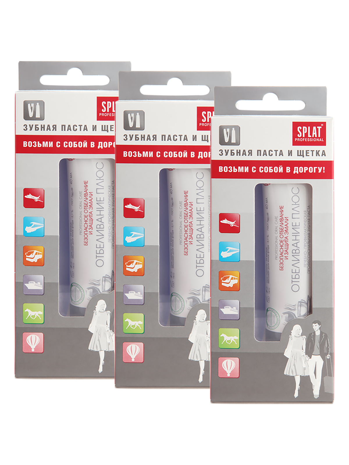 Зубная паста Professional SPLAT Отбеливание плюс, 40 мл в комплекте с зубной щеткой, дорожный набор 3 шт