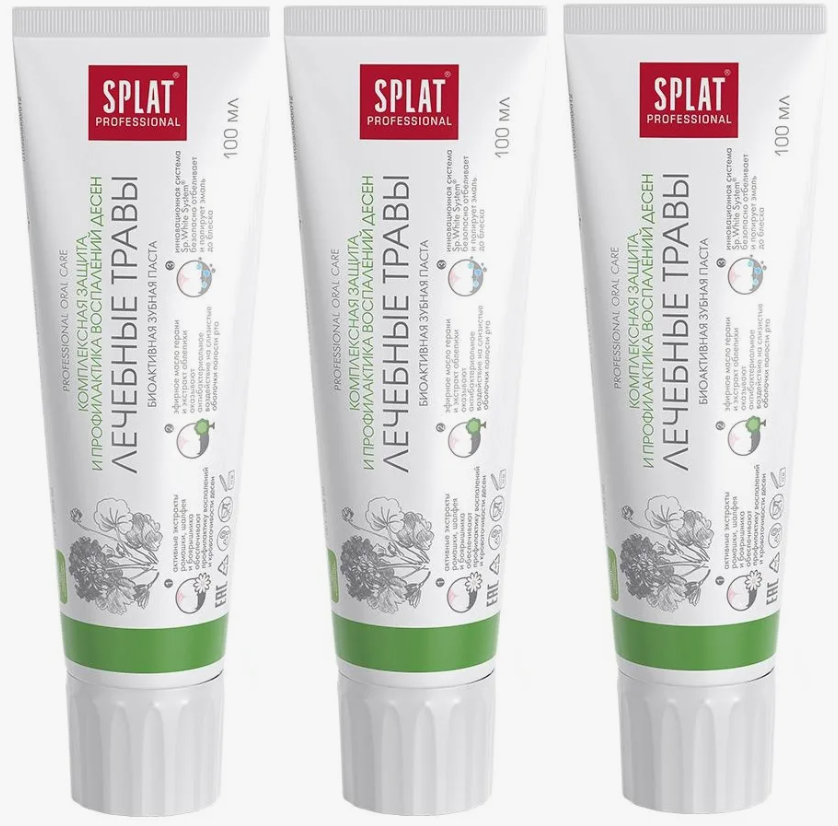 СохранитьНабор из 3 штук Зубная паста SPLAT Professional 100мл Лечебные травы интересное: