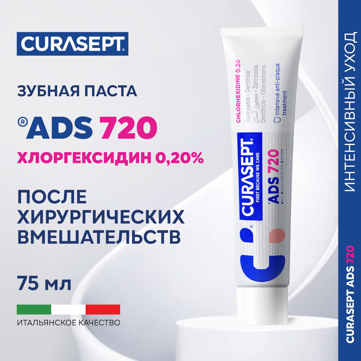 Зубная паста Curasept ADS 720 с с хлоргексидин диглюконатом, 0,2% 75мл интересное: