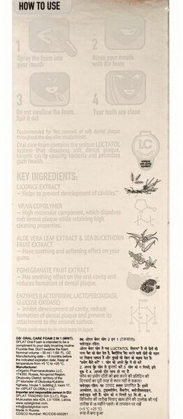 Очищающая пенка Splat Oral Care Foam для зубов и десен, 2в1, с ароматом мяты, 50 мл