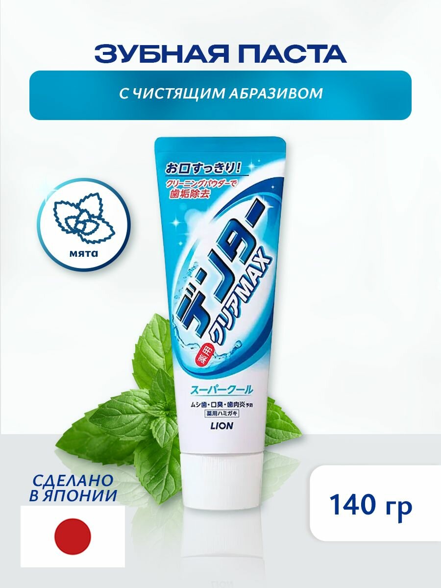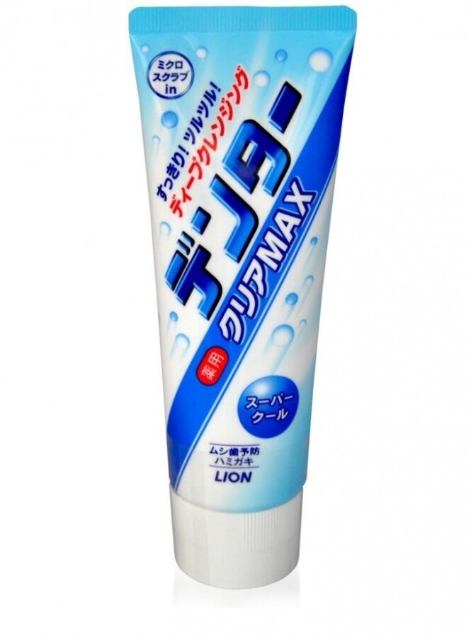 LION Зубная паста с микрогранулами Dentor Clear Max Super Cool мята охлаждающая, туба 140 гр.
