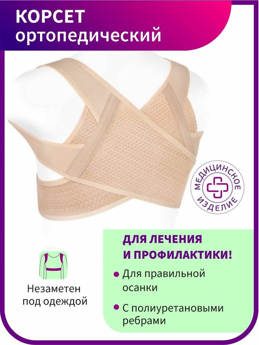 Корректор осанки Экотен КК-10 реклинатор при нарушениях осанки, не заметен под одеждой, бежевый (S)