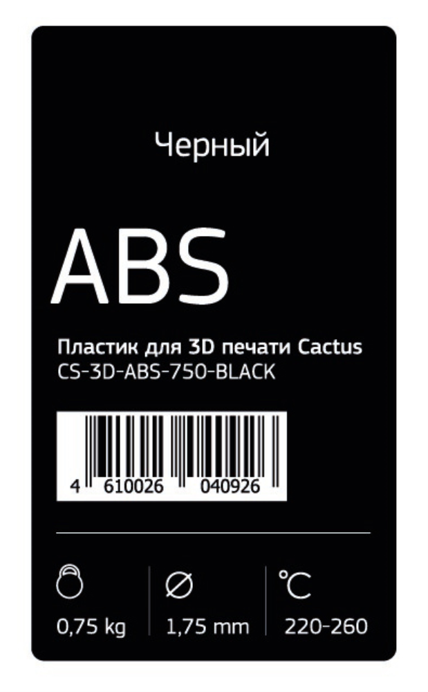 Cactus ABS пластик для 3D принтера d1,75 черный CS-3D-ABS-750-BLACK
