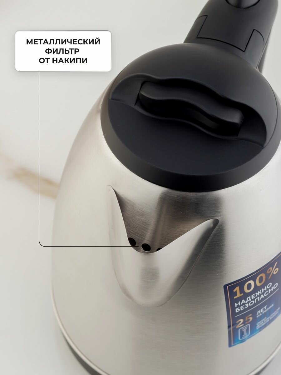 Чайник SCARLETT SC-EK21S20, 1,8 л, 1600 Вт, закрытый нагревательный элемент, сталь, 451888